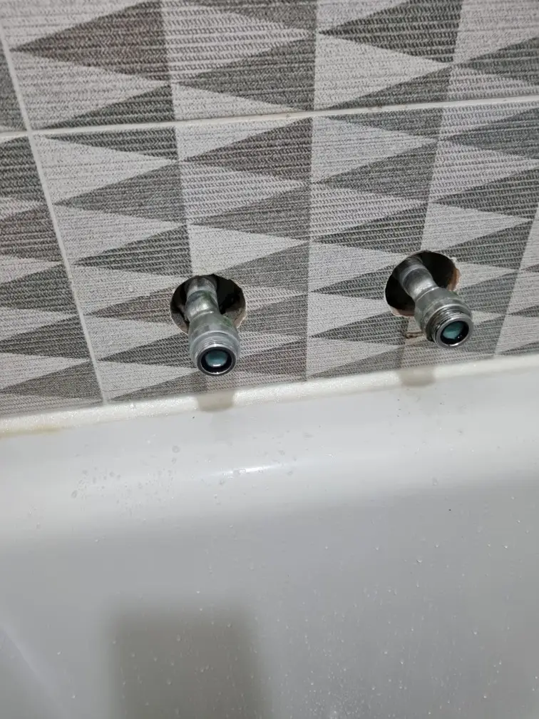 먼저 욕실 메인 급수 밸브를 잠근 뒤 잔수를 빼내고, 주변을 방수포로 덮어 깔끔하게 작업할 수 있도록 준비했습니다. 기존 수전을 분해하기 위해 장식캡을 벗기고 고정 너트를 렌치로 천천히 풀었습니다. 벽체 안쪽 배관과의 연결부가 오래되어 부식이 있었기 때문에, 누전 및 파손을 방지하기 위해 부드럽게 작업을 진행했습니다. 수전을 제거한 뒤 배관에 남아 있던 낡은 테프론 테이프와 실리콘 찌꺼기, 녹물을 제거하고 깨끗한 상태로 만들었습니다.